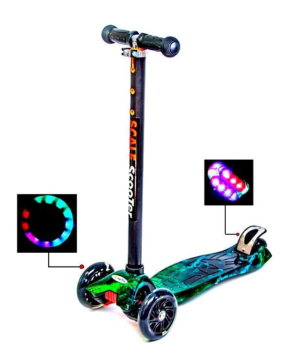 - -Колеса поліуретанові, під час катання світяться: переднє діаметром 12 см, заднє — 8,5 см, обладнані підшипниками ABEC-7